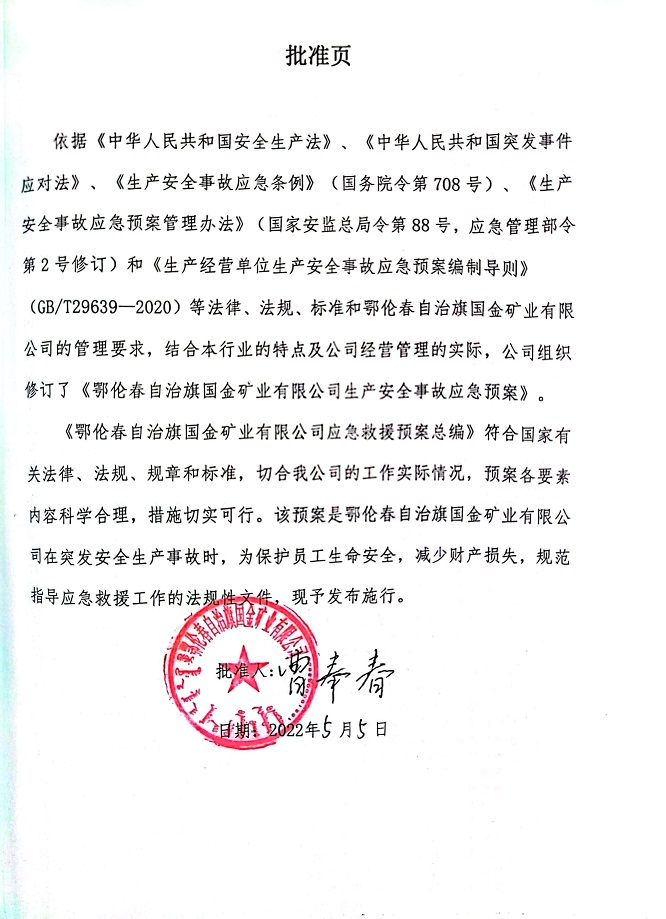 鄂倫春自治旗國金礦業有限公司生產安全事故應急預案